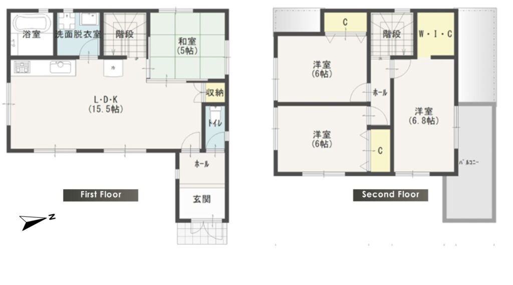 ●土地面積:129.14㎡(私道負担2.78㎡含む) ●建物面積:95.11㎡ ●駐車2台可能 ●広々バルコニー