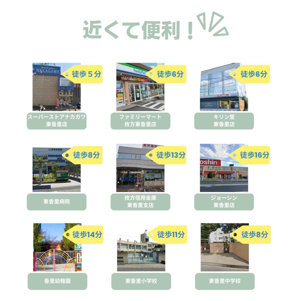 交通京阪「香里園駅」バスで11分  京阪バス「東香里停」徒歩2分